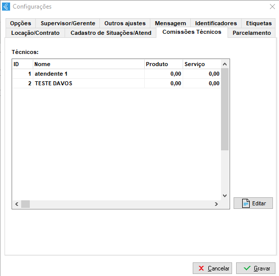 É possível pré determinar as comissões dos técnicos de produtos e serviços;