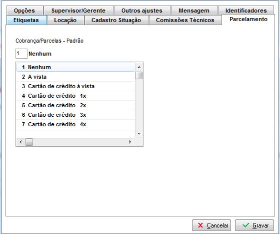 Nesta aba é possível configurar o parcelamento padrão a ser lançado automaticamente na O.S.