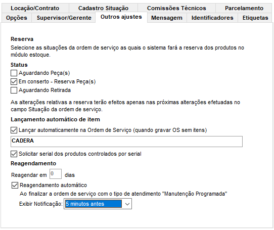 Na aba Outros Ajustes ficam disponíveis as seguintes opções de configuração: