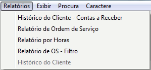 Para gerar tais relatórios, dentro do seu Clipp Service, acesse o módulo Ordem de Serviço e vá até o menu Arquivo, neste momento, serão apresentadas as opções Histórico do Clientes – Contas a Receber, Relatório de Ordem de Serviço, Relatório por Horas e Relatório de OS - Filtro