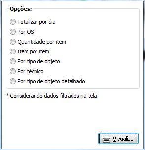Esse relatório apresenta as ordens de serviço com base no período informado na tela de geração além dos critérios que ficam disponíveis para seleção, assim que marcadas as opções desejadas, basta clicar em Visualizar.