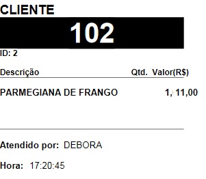 Este relatório será impresso na mesma impressora configurada para impressão de NFC-e. Serão impressas as informações do número da mesa, os produtos e suas respectivas quantidades e valores.