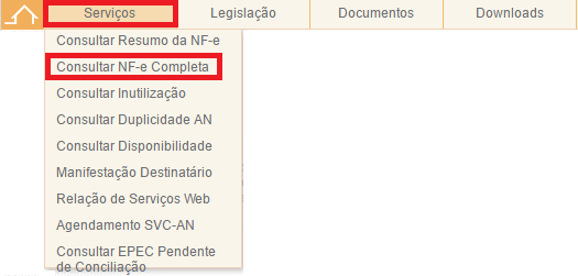 Para isso acesse o site http://www.nfe.fazenda.gov.br/ clique em Serviços > Consultar NFe Completa: