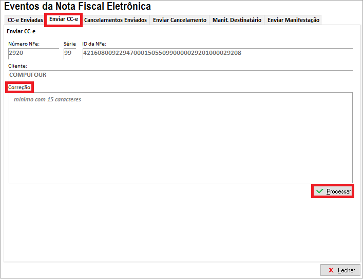 IMPORTANTE: Para que a CC-e da NFe seja efetuada corretamente, é recomendado que mantenha seu sistema atualizado com o último build disponibilizado pela CompuFour.