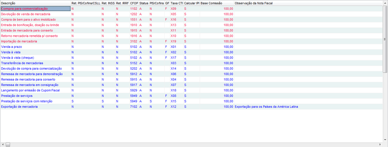Caso já tenha a taxa que será utilizada cadastrada, verifique o procedimento referente ao Cadastro da Natureza de Operação (CFOP).