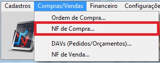 2. Abra o módulo Compras clicando na aba Compras/Vendas e acesse o menu NF de Compra...