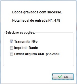IMPORTANTE: A opção para transmitir a NFe de entrada eletrônica é uma novidade da versão 2019. Caso possua versões anteriores, deverá abrir o gerenciador de NFe e transmitir a nota manualmente.