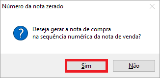 Ao efetuar o preenchimento conforme explicado anteriormente, deve ser apresentada a mensagem abaixo, confirme a mensagem clicando em Sim: