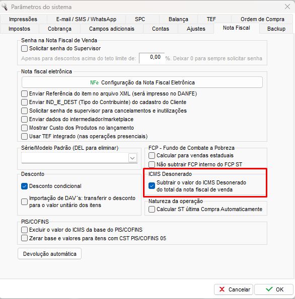 Antes de emitir a Nota Fiscal, é necessário saber se você precisa subtrair (descontar) o valor do ICMS desonerado no total da nota, para isso foi criado um parâmetro.