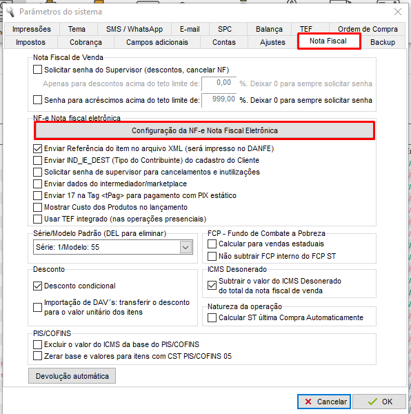 Configuração da Nota Fiscal Eletrônica (NF-e)