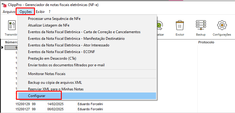 Acessando a Configuração da Nota Fiscal Eletrônica