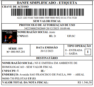 Marcando a opção Simplificada - Etiqueta, imprimirá conforme exemplo abaixo: