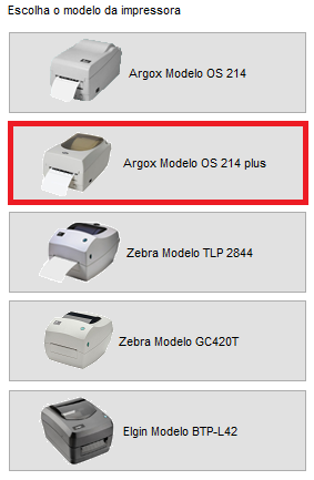 Ao selecionar a Argox OS 214 Plus, serão apresentados os tipos de etiquetas conforme abaixo: