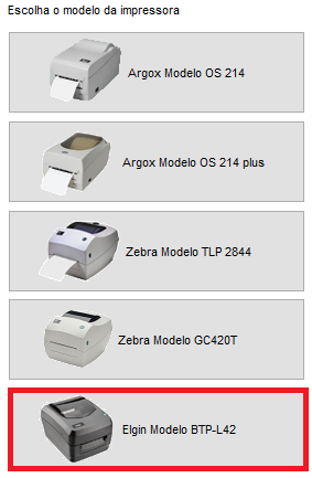 Ao selecionar a Elgin BTP-L42, serão apresentados os tipos de etiquetas conforme abaixo: