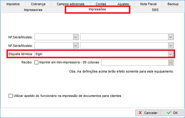 Escolha a alternativa desejada, pressione a tecla F10 / Yes e teste novamente. Vá testando cada um dos padrões e veja qual deles fará com que a etiqueta seja impressa.