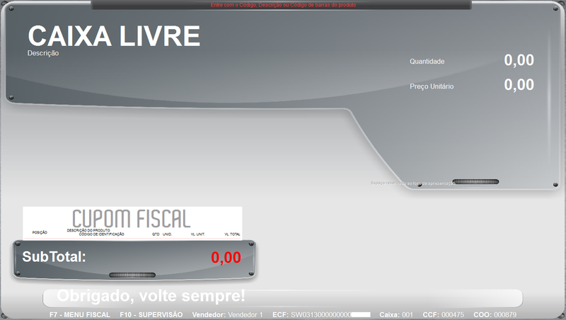 Para estes estados a emissão da Nota Manual deve ocorrer antes da Redução Z do dia, a mesma deverá estar operante emitindo cupons fiscais normalmente. O lançamento da Nota Fiscal Manual será realizado como se fosse um cupom fiscal, conforme instruções abaixo: