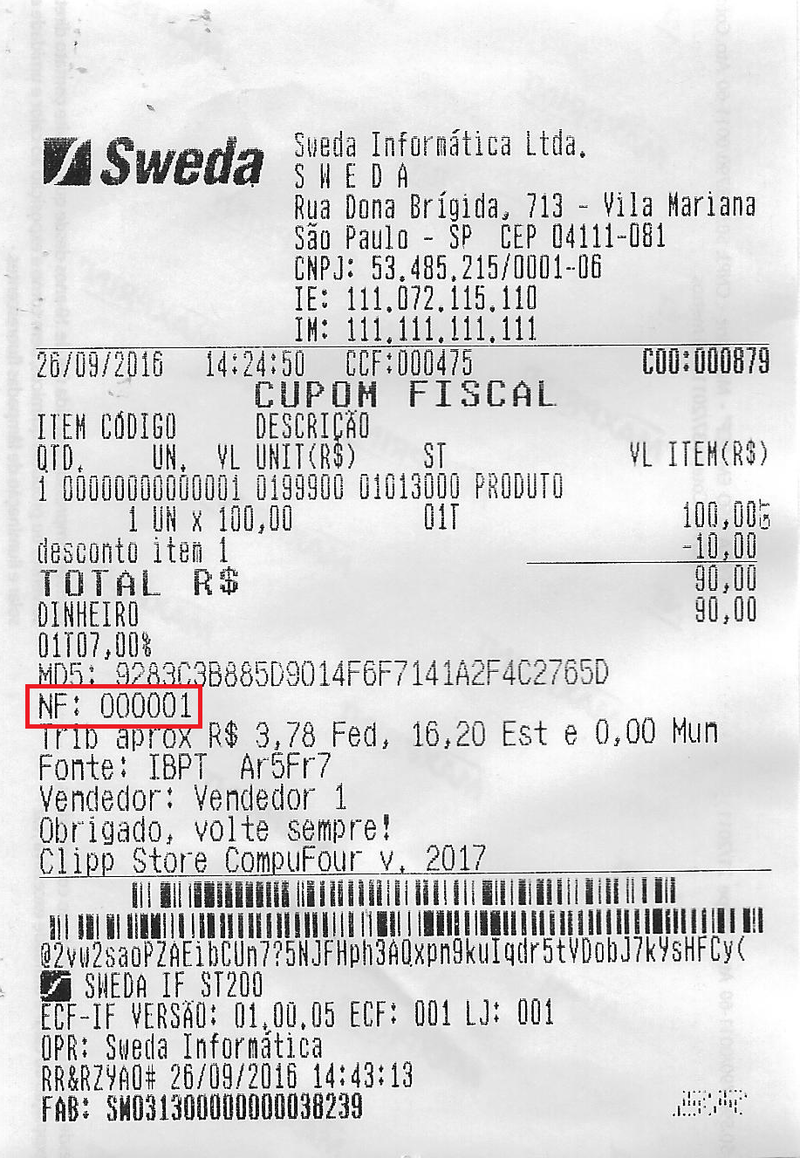 Os procedimentos para finalização são iguais à do cupom fiscal, pressione F3 para definir a forma de pagamento utilizada e finalize. Desta forma, o cupom fiscal será impresso normalmente, incluindo a informação do número da nota fiscal manual no final do cupom.