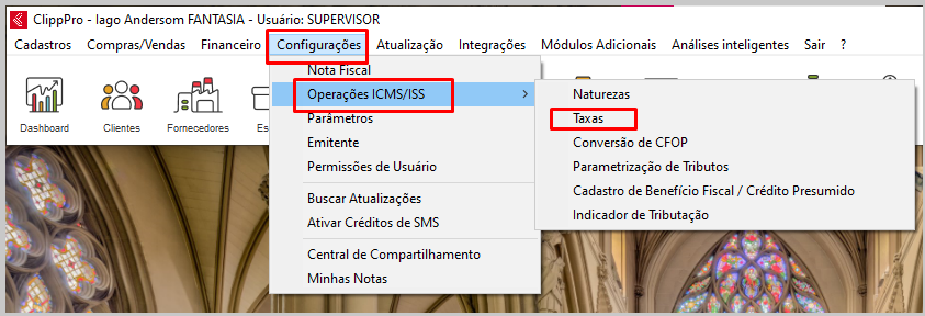 Após ter conferido o preenchimento do cadastro do produto, caso o campo Taxa ICMS/ISS estiver em branco, efetue os procedimentos a seguir: