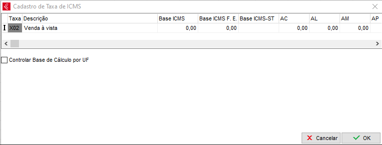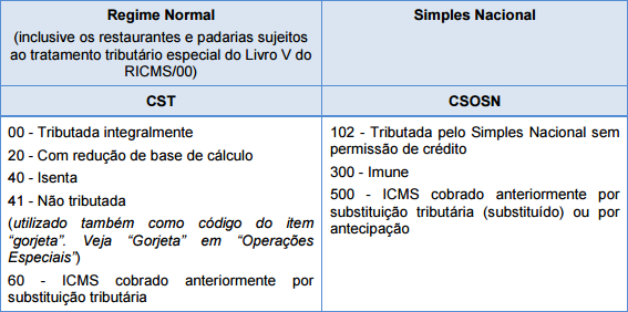 ATENÇÃO: Só serão criadas as tags de ICMS para empresas Não Optantes do Simples Nacional e que utilizem o CST 00 e 20. Nos outros casos, sugerimos que utilize no cadastro do produto ou no cadastro do CFOP que será utilizado para emitir a NFC-e uma taxa que possua a Base ICMS 0 (zero).