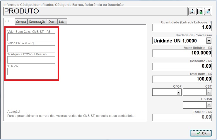 É importante destacar que os campos CST e CSOSN (caso Optante pelo Simples Nacional) também influenciam o cálculo da Substituição Tributária, portanto, realize o preenchimento dos mesmos com o auxílio do seu contabilista.