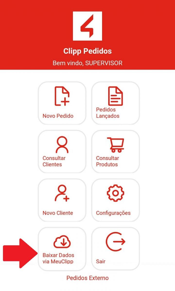 Em seguida, volte a tela inicial e faça o login com suas credenciais, então clique em Baixar Dados via MeuClipp;