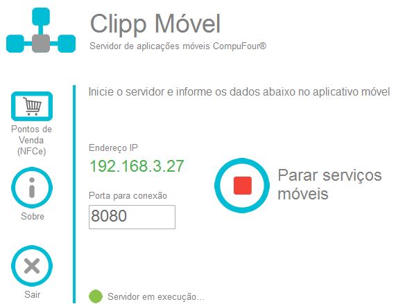 Com o IP e a porta já apresentados no Clipp Móvel, clique em Iniciar serviços móveis.