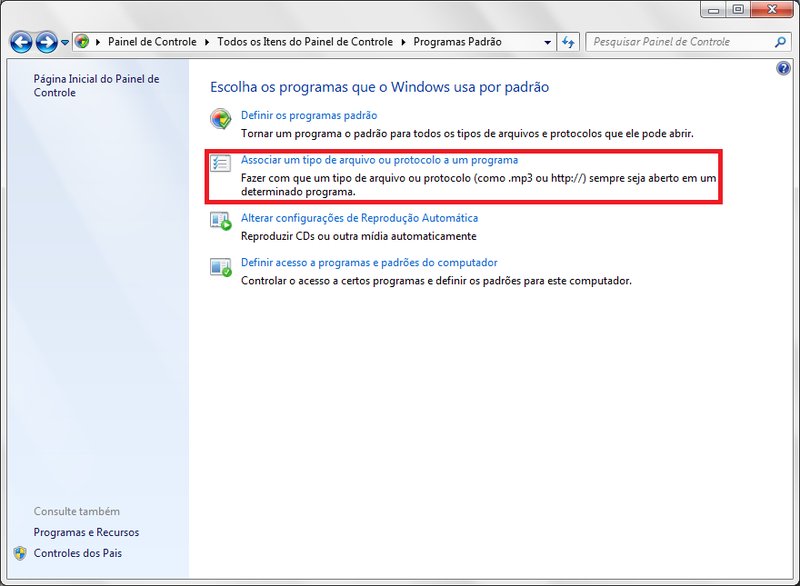 Feito isso, clique em Associar um tipo de arquivo ou protocolo a um programa.