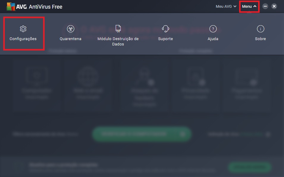 Abra o painel do AVG através do atalho do mesmo em sua área de trabalho ou pela barra de tarefas;