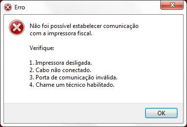 Para que o Emissor de Cupom Fiscal (ECF) comunique corretamente com a sua impressora fiscal são necessárias algumas configurações. Caso não for efetuado algum procedimento corretamente serão apresentadas as seguintes mensagens: