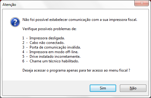 Persistindo a situação, verifique os procedimentos de instalação das impressoras fiscais e também outras configurações abaixo.