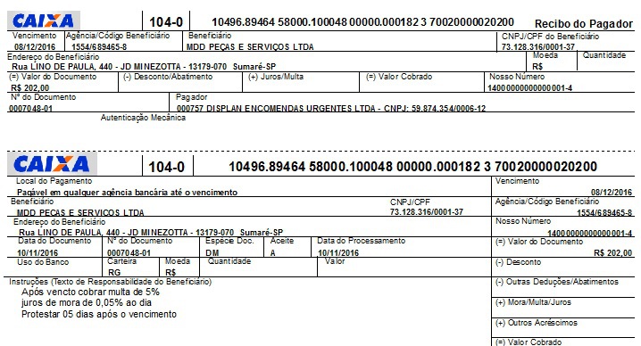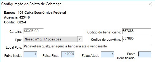 Configuração de Boleto de Cobrança - Caixa Econômica Federal