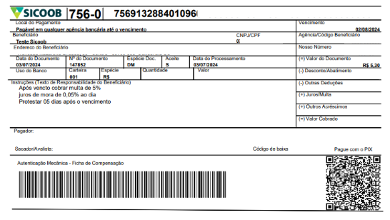 Marcando esta opção ao gerar o boleto será destacado o QR Code para pagamento no título gerado