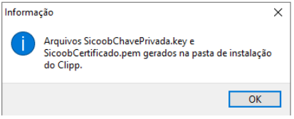Na aba Ferramentas, você ira gerar dois arquivos o SicoobChavePrivada.key e SicoobCertificado.pem, que são necessários para finalizar a configuração do boleto via API.