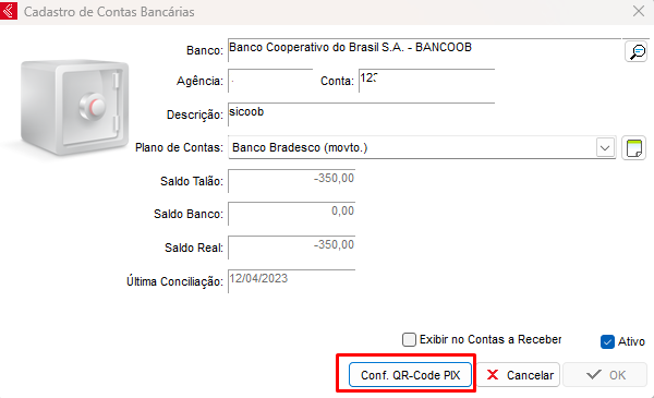 Feito isso, acesse o cadastro da conta bancária, e clique na opção de Conf. QR-Code PIX
