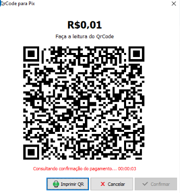 Ao você avançar na tela anterior, será apresentado o QR-Code para o pagamento na tela do seu sistema, caso queira, poderá imprimir o mesmo.