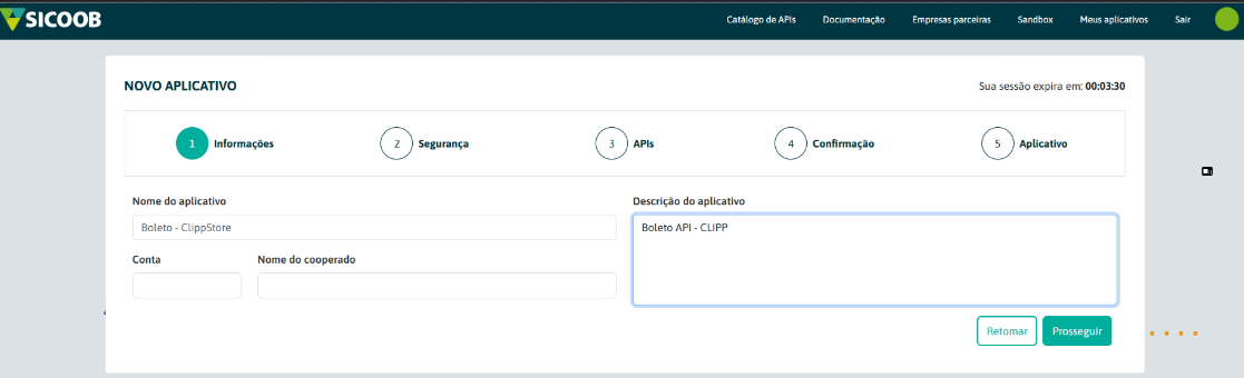 Após acessar o site https://developers.sicoob.com.br/portal/login acesse o menu Meus Aplicativos e clique em Cadastrar