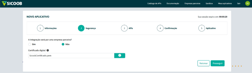 Marque a opção que NÃO será uma integração por empresa parceira e inclua o certificado .PEM, caso não possua o certificado, pode entrar em contato direto com o Banco para adquirir ou gerar o mesmo pelo sistema clicando aqui.
