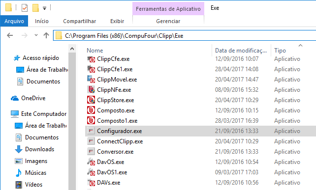 Salve o arquivo Configurador nesta pasta que foi aberta e execute clicando duas vezes sobre o arquivo.