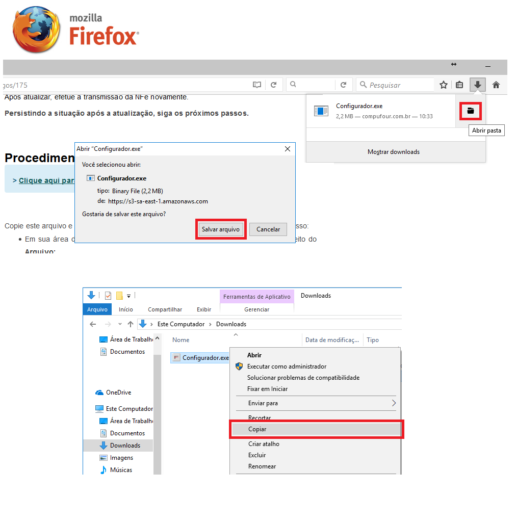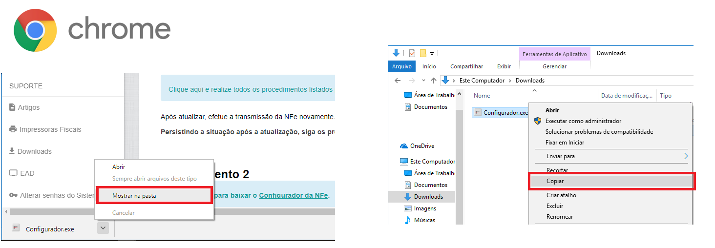 Após baixar o arquivo Configurador.exe, clique com o botão direito sobre o mesmo, e em seguida Copiar.