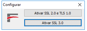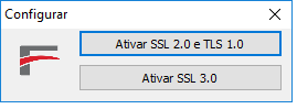 Após abrir o arquivo Configurador, nesta tela clique na primeira opção Ativar SSL 2.0 e TLS 1.0.
