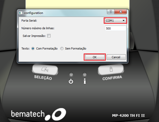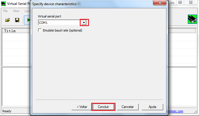 Lembrando que, o ideal é que a impressora seja configurada entre as portas COM1 até a COM3. Mininize o VSPE.
