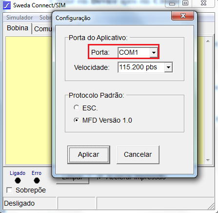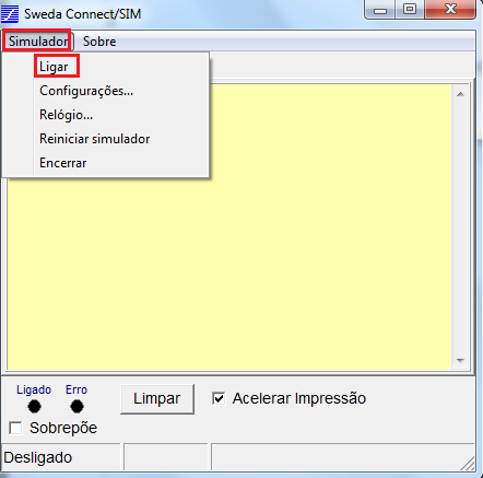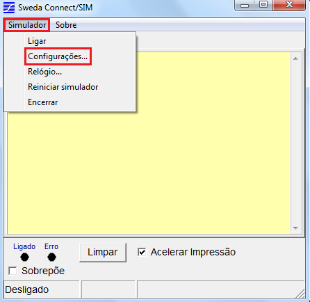 Acesse o programa ConnectSIM, clique em Simulador após em Configurações: