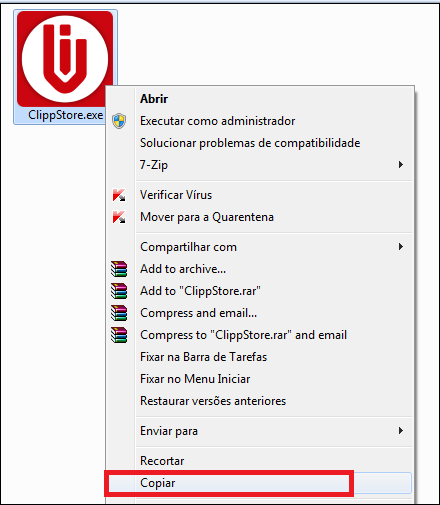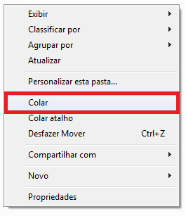 Com o botão direito do mouse clique em cima do arquivo descompactado e copie o mesmo.