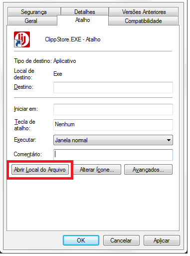 Depois vá até a área de trabalho do seu computador, localize o ícone do sistema, / Propriedades / Localizar Destino ou Abrir Local do Arquivo;