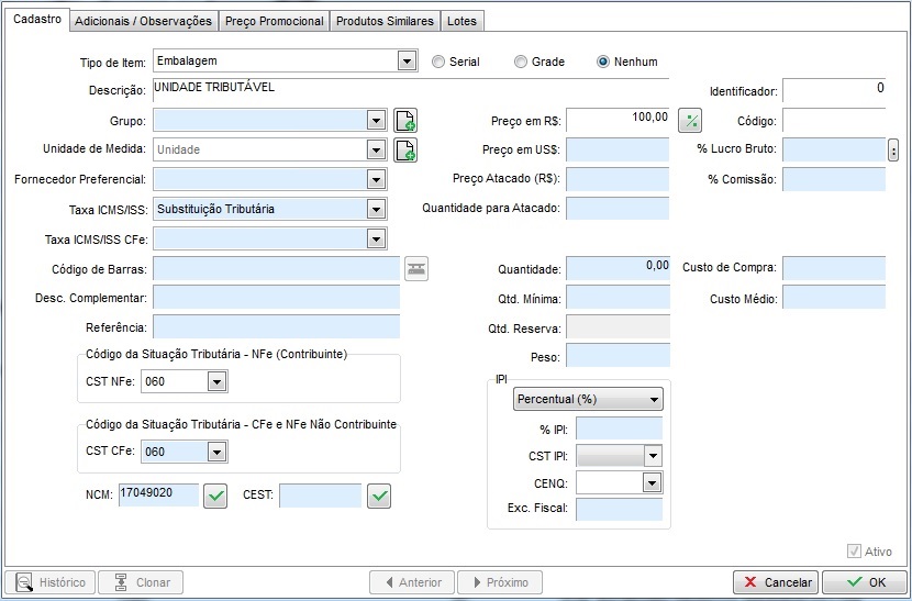 Obs: As unidades Ex cadastradas no sistema, são padrão da SEFAZ, conforme a Tabela NCM e respectiva Utrib (comércio exterior) Vig. 01-07-2017 NT 2016.003 v.1.10 e NT 2016.001 v.1.30, sendo assim não será possível incluir uma nova.