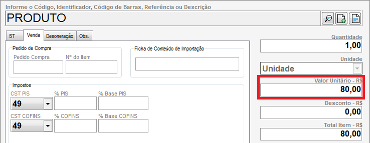 - Quando o estado não for PAF-ECF, o sistema atribuirá o valor de atacado como o próprio valor unitário do item, sendo desnecessário a informação de desconto.