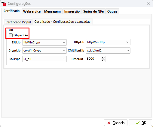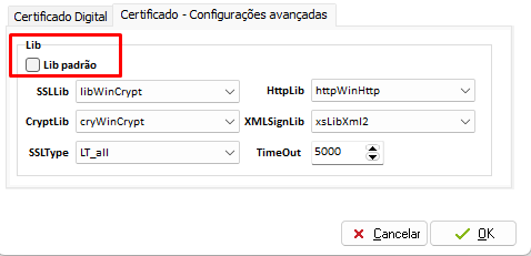 Desmarque a opção LibPadrão e efetue novos testes.