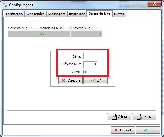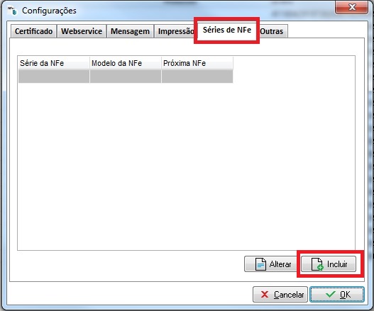 Abrirá a tela onde temos a configuração do gerenciador de notas, clique na aba Séries de NFe e clique no botão incluir.