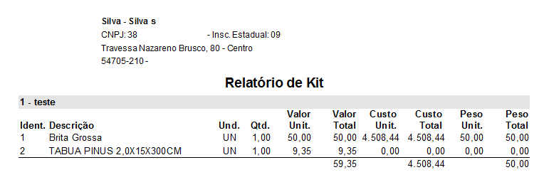 Será impresso o relatório do kit:
