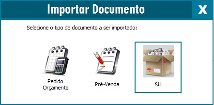 É possível importar o Kit para NF-e, NFC-e e Pedido de venda/Orçamento!